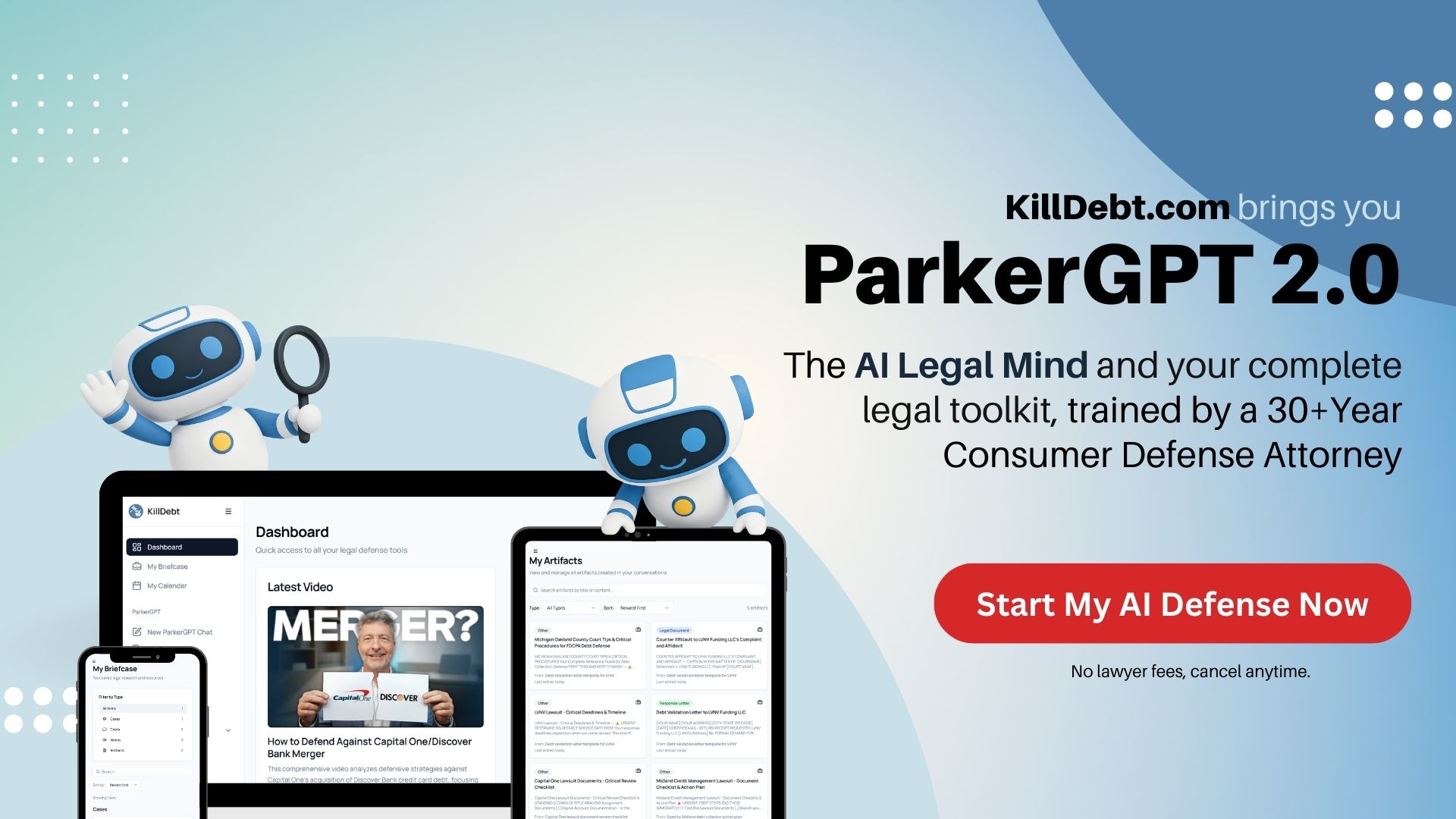 Stay one step ahead with our powerful ParkerGPT, an AI-powered system built for real people and lawyers alike. From your Briefcase to your Calendar, and from ParkerGPT to the Case Searcher, KillDebt helps you plan, research, and respond with confidence.